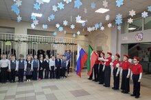 По традиции утро понедельника начинается с поднятия флагов Российской Федерации и Республики Татарстан, а также исполнения гимнов