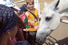 Сегодня экскурсия на ипподром. Здорово! Ребята на ипподроме. Как прекрасны его обитатели: кони и лошади. Дети внимательно слушали экскурсовода с подробным рассказом об истории ипподрома и коневодства в Татарстане, описанием принципов различных видов конно-спортивного искусства. Дети посетили конюшни, покатались верхом и покормли животных.