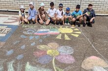 Рисунки на асфальте украсили школьный двор сегодня в пришкольном лагере! Ребята очень старались, полюбуйтесь результатом