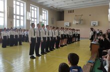 В понедельник 26 февраля состоялась торжественная линейка чествования юнармейцев гимназии №174 в честь праздника дня защитника отечества.