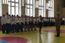 В рамках месячника военно-патриотического воспитания в Гимназии №174 прошел смотр строя и песни для учащихся среднего и старшего звена. Ребята показали свои умения ходить строевым шагом, а также слаженно работать в команде.