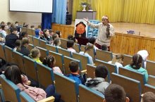 Ребята из пришкольного лагеря на празднике "Волшебники лучезарного города".