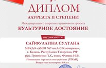 Поздравляем Сайфуллину Султану с получением диплома лауреата II степени в Международном закрытом грантовом проекте "Культурное достояние"! 01.06.2020