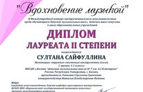 Поздравляем Сайфуллину Султану с получением диплома лауреата II степени на Международном конкурсе инструментального исполнительства "Вдохновение музыкой"! 07.06.2020