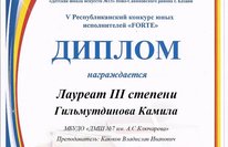 Поздравляем Гильмутдинову Камилу с дипломом лауреата III степени на V Республиканском конкурсе юных исполнителей "FORTE"! 08.06.2020