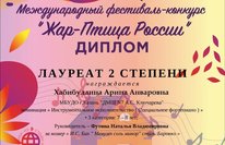 Поздравляем Хабибуллину Арину с получением звания лауреата II степени на Международном фестивале-конкурсе "Жар-Птица России"! 10.06.2020