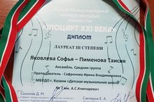27 апреля 2019г. прошел Первый Международный конкурс молодых пианистов "Моцарт XXI века", Яковлева Софья - Пименова Таисия (ансамбль) - Лауреаты III степени (преподаватель Сафронова И.В.).Желаем дальнейших Побед!