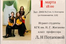 4 марта 2018г в Музее им.М.Горького состоялся очередной концерт лауреатов Международных и Всероссийских конкурсов инструментального ансамбля "АRT QUARTET" с новой музыкально-познавательной программой "В мире семи нот". В составе ансамбля входят преподаватели ДМШ№7 им.А.Ключарева- Занозовские Иван Андреевич и Надежда Николаевна, Яковлева Анастасия Юрьевна . Концерт прошел на высоком профессиональном уровне, были представлены новые сочинения и переложения Занозовского И.А., произведения А.Пьяццолы, Ж.Ришара, В.Семенова, композиторов Татарстана, а также неаполитанские, русские и татарские песни в исполнении солиста ансамбля Ильдар Рахимова. Весь концерт сопровождался интересным рассказом о происхождении и истории семи нот.