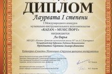 Учащиеся Детской музыкальной школы №7 им.А.С.Ключарева по классу домры Дарья Ли и Анна Моисеева с успехом выступили 14 мая 2016 года на I Международном конкурсе музыкально-инструментального исполнительства «KAZAN – MUSIC ЙОРТ». Конкурс проходил в Казанском государственном институте культуры. В состав жюри конкурса вошли Ректор Института культуры мира (ЮНЕСКО), президент Международной Гуманитарной Академии «Европа-Азия», член президиума Российской Ассоциации содействия ООН, академик, доктор исторических наук, профессор Э.Р.Тагиров, заслуженный работник культуры РТ Л.Н.Сазонкина, заслуженный работник культуры РТ, доцент кафедры музыкального исполнительства КазГИК Ю.Г.Королев, лауреат всероссийских и международных конкурсов А.Ф.Давлетшин. Дарья Ли (преп.Гарапшина Э.Ф., концертмейстер Ефремова Л.В.) удостоена звания ЛАУРЕАТА I степени.