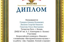 В свою очередь, педагог, Гумаров А.Н., благодарит за безупречную поддержку концертмейстера Гиматову О. В., родителей учеников за участие, а также руководство ДМШ №7 за оказанную поддержку.