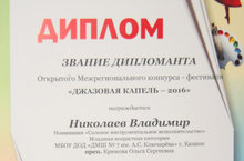 Учащиеся Детской музыкальной школы №7 им.А.С.Ключарева стали победителями Открытого Межрегионального конкурса-фестиваля «Джазовая капель - 2016». Алёна Крюкова (преподаватель Крюкова О.С.) – Лауреат I степени, Владимир Николаев – Дипломант.