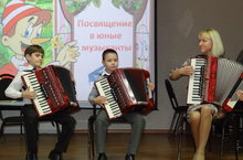 26 ноября в актовом зале музыкальной школы № 7 им. А. Ключарева состоялся концерт « Посвящение в юные музыканты». Данное мероприятие стало первым серьезным сценическим опытом для учащихся первого класса. Юные музыканты активно приняли участие в театральном действии, перевоплотившись в нотки, музыкальные ключи, лады, в страшного злодея Диссону, укравшего Королеву музыки Мелодию! Ученики быстро и ловко, преодолев все испытания (угадывали музыкальные инструменты, отвечали на музыкальные вопросы-загадки) вернули в музыкальную страну Мелодию. Театральное действо чередовалось с концертными номерами. Перед первоклассниками выступили учащиеся школы старших классов –Хайруллина Жасмин (Гендель «Прелюдия», класс скрипки, преподаватель Мингалимова Ф.Н.), Сальникова Анжелика (Кабалевский «Маленькая полька»; класс флейты, преподаватель Мингазетдинов А.Х.), Миннуллина Ясмина, Хамитова Аделя, Степанова Полина ( «Волшебник-недоучка», Роджерс «Прекрасные вещи», Крылатов-Энтин «До, ре, ми, фа, соль…»; вокальное отделение, преподаватель Карманова Ю.А.). Учащиеся первых классов сами тоже блистали на сцене. Ансамбль домристов «Капельки» – Гатауллина Лейла, Гатиятова Илария, Панков Илья, Саитова Алия (класс преподавателя Э.Ф. Гарапшиной) исполнили «Азбуку» Моцарта, трио аккордеонистов – преподаватель О.А. Мазур, ученики Хуснутдинов Аскар и Степанов Кирилл сыграли произведение «Шесть утят», юный флейтист Квиташ Дмитрий сыграл «Кошечку» Витлина (класс преподавателя А.Х. Мингазетдинова). Юные пианистки – Токаева Арина (преподаватель Камалеева Н.Р.) и Загриева Самира (класс преподавателя Якуповой Э.Б.) представили слушателям небольшие фортепианные произведения. Большое удовольствие зрители получили от шумового оркестра первоклассников «Шумелки», который сыграл всем знакомую шуточную пьесу «Два веселых гуся». Хор младших классов «Солнышко» (руководитель Карманова Ю.А.) порадовал всех прекрасным репертуаром – Роджерс «Звуки музыки», Брамс « Мы дружим с музыкой», Л. Тагирова «Музыка». В кульминационной части вечера первоклассник принял из рук выпускника вечный огонь Искусства и Музыки, торжественно пообещав «учиться и заниматься, гаммы, пьесы и этюды учить каждый день…». Вечер завершился торжественной речью директора школы Токаева Р.А., который пожелал ученикам трудолюбия, удачи, новых знаний.