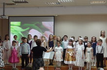 Преподаватели детской музыкальной школы №7 имени А.С.Ключарева Юлия Александровна Карманова, Дина Феликсовна Окунева провели для милых мамочек и бабушек праздник-поздравление учащихся первого класса. А это младший хор «Солнышки» и «Зёрнышки», солисты-вокалисты.
