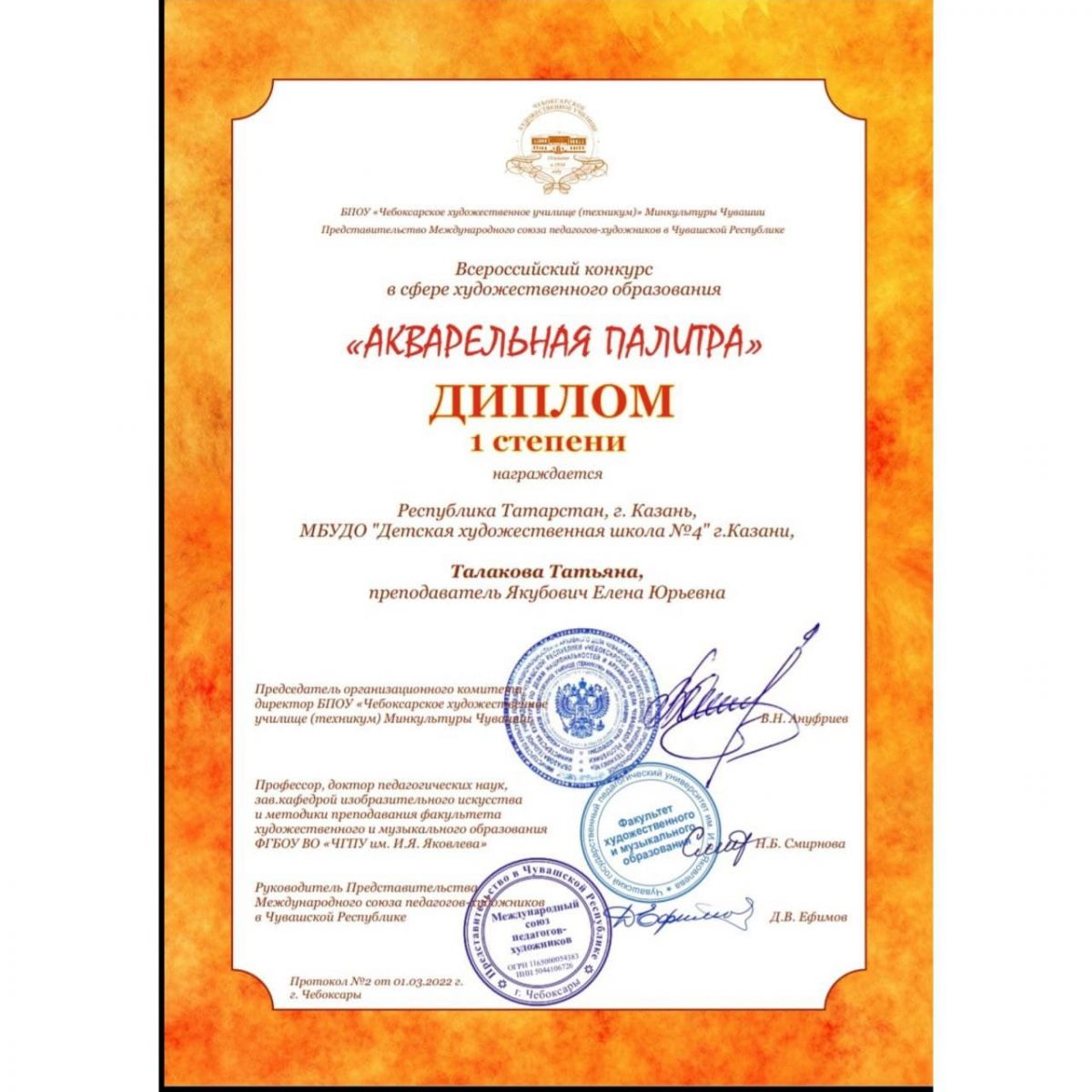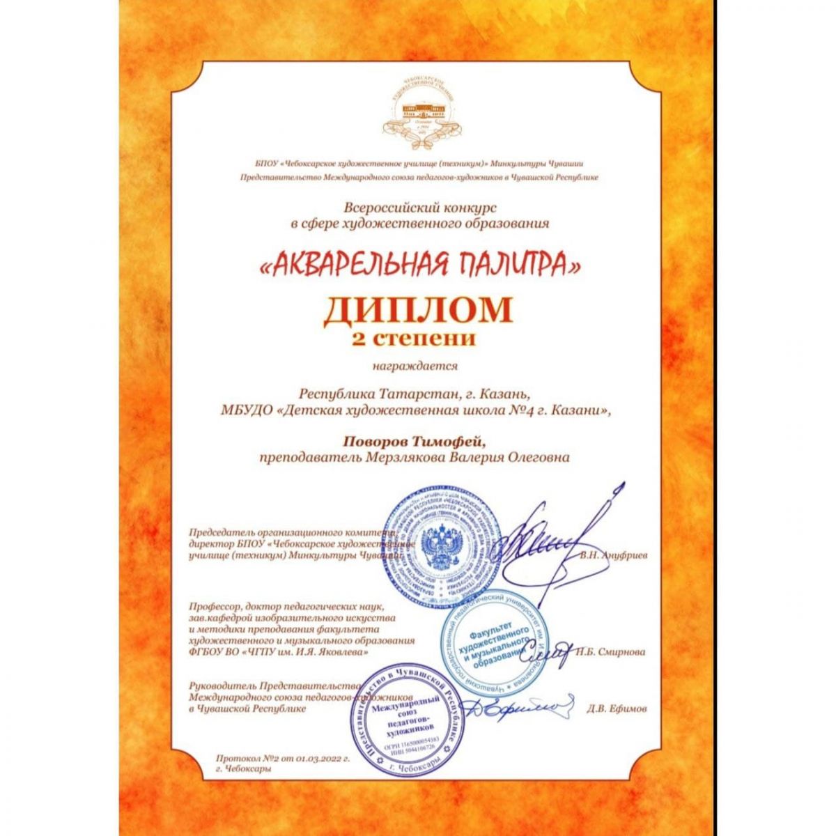 Поздравляем наших учащихся с призовыми местами во Всероссийском конкурсе в сфере художественного образования "Акварельная палитра" (г.Чебоксары)!
