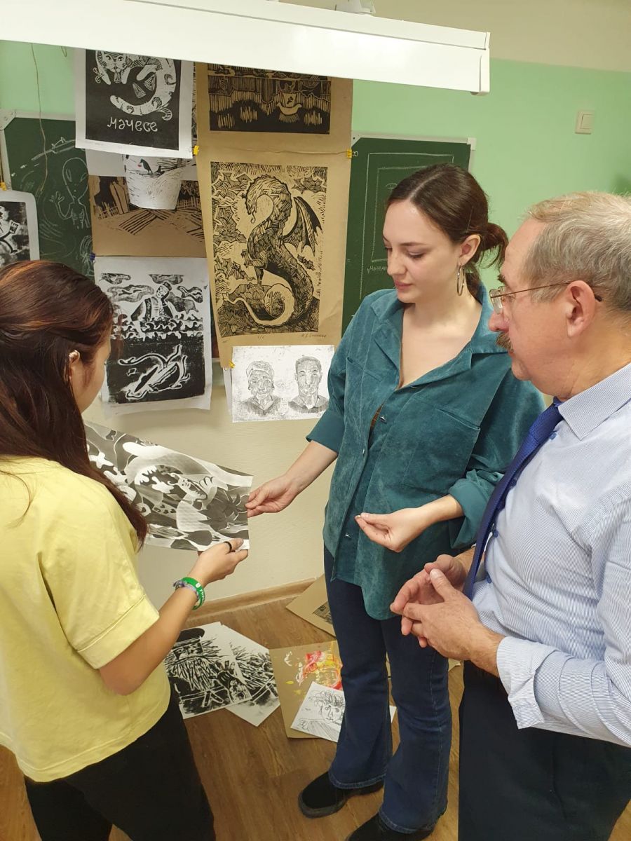 Выборнова Лада Александровна выступила с докладом "Ревитализация культурно - исторического наследия ,как основной тренд инкультурации личности в проекте «Наследие в юном сердце»; Мерзлякова Валерия Олеговна с докладомо "Силуэт как выразительное средство изображения в графической композиции", где поделилась своим опытом в участии в практикуме от проекта “Эстамп — это здо́рово! (Первая всероссийская биеннале печатной графики юных художников)” .