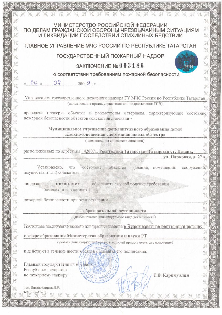 Заключение о соответстсвии требованиям пожарной безопасности