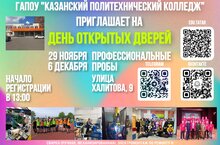 29 ноября и 6 декабря 2023 г. в ГАПОУ «Казанский политехнический колледж» состоится День открытых дверей.