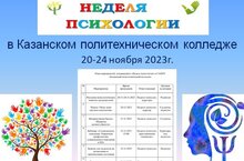 обеспечивающих формирования стрессоустойчивости у детей и подростков, в Казанском политическом колледже проводится с 20 по 24 ноября Неделя психологии.Дәүләт сәясәте Департаментының хаты нигезендә Россия Федерациясе Мәгариф министрлыгының Балалар хокукларын яклау өлкәсе 07.11.2023 ел no 07-6429 Бөтенроссия «психология атналыгы» н үткәрү турында, ә шулай ук чараларны гамәлгә ашыру өчен шартларны саклау максатыннан Казан сәяси көллиятендә 20-24 ноябрь көннәрендә психология атналыгы үткәрелә.
