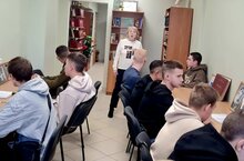 2023 елның 23 октябрендә китапханәче Каюмова Әлфия Юныс кызы беренче курс студентлары белән танышу һәм әңгәмә үткәрде. -