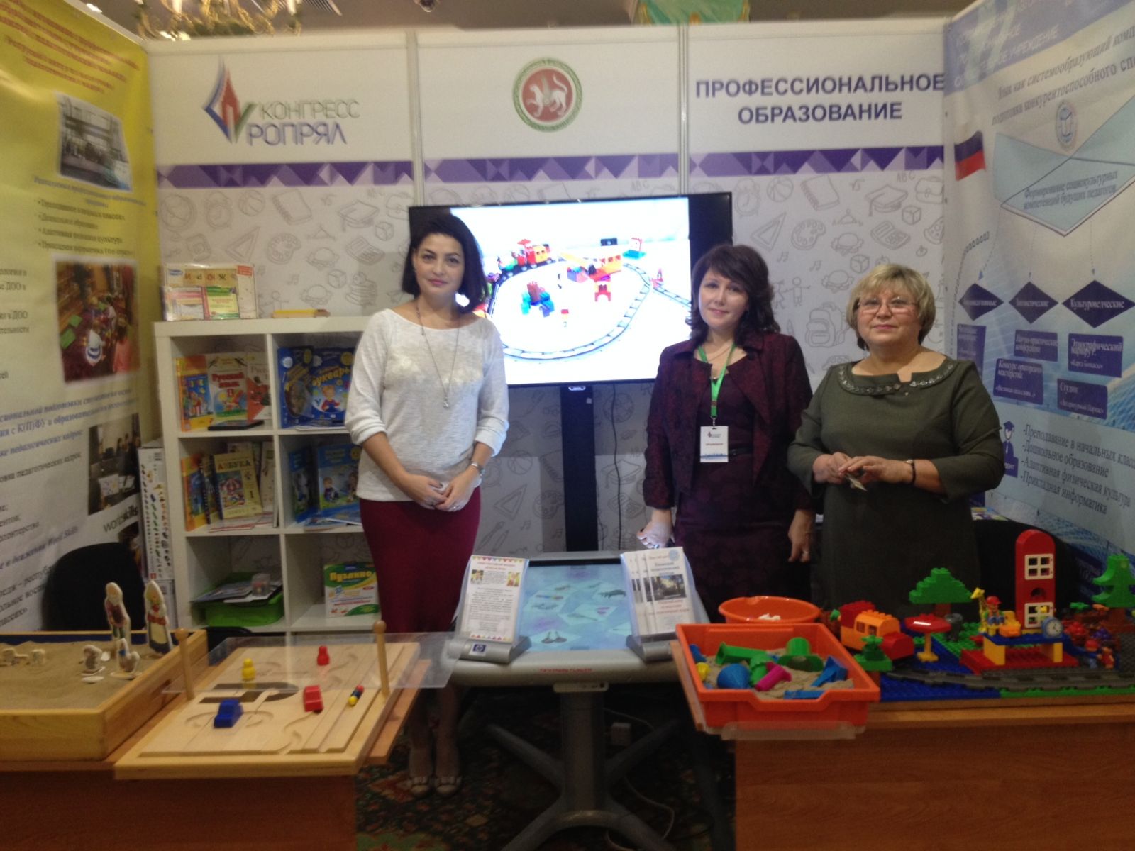 Перед официальным открытием Вербицкая в компании президента РТРустама Минниханова и главы минобрнауки РТ Энгеля Фаттахова прошли по выставке образовательных учреждений, в которой был представлен и Казанский педагогический колледж.