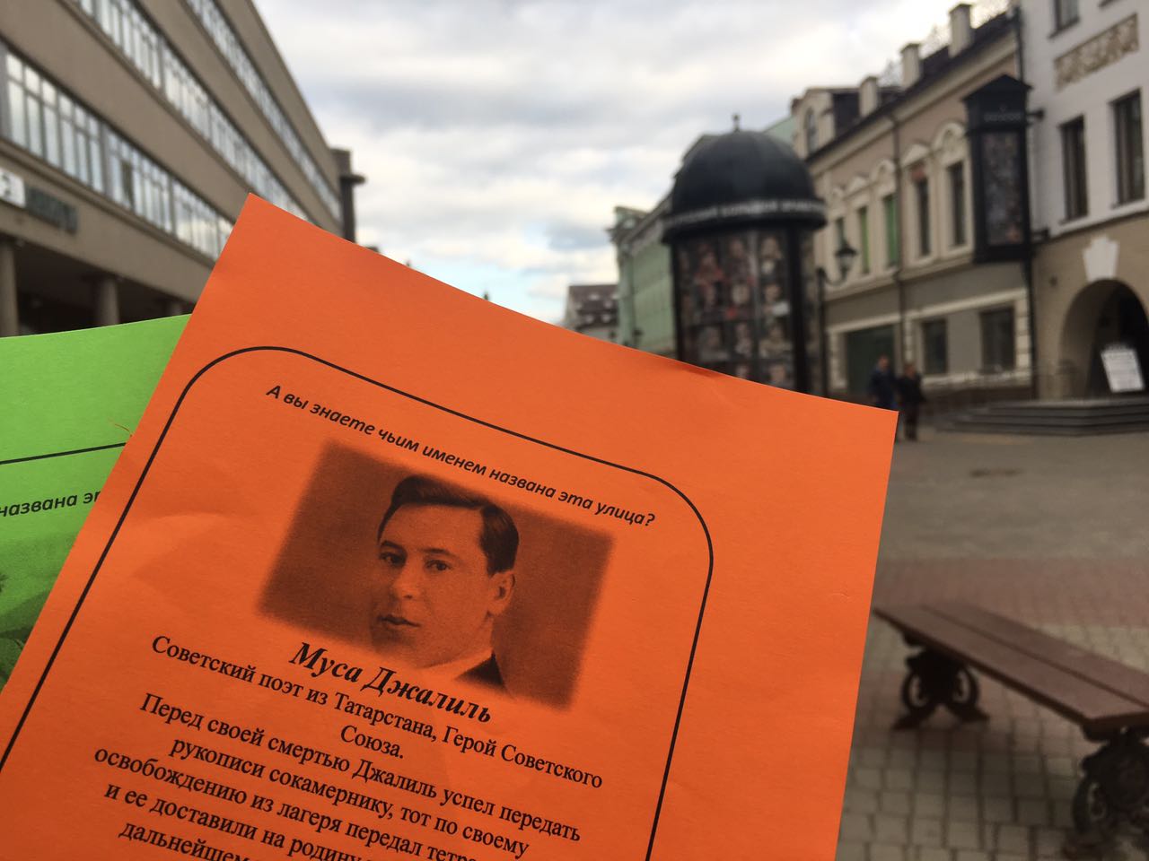 Опубликовано: 20.04.2017Студенты Казанского педагогического колледжа, члены волонтерского движения "Kind people" - Карина Иванова, Динара Насырова и Наиля Хананова провели акцию на улицах города " Их именами названы улицы.. "