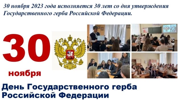 30 ноября 2023 года исполняется 30 лет со дня утверждения Государственного герба Российской Федерации.