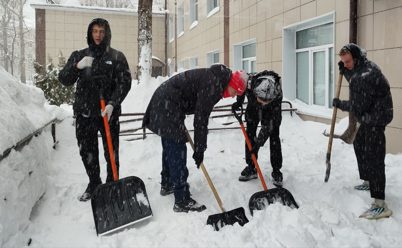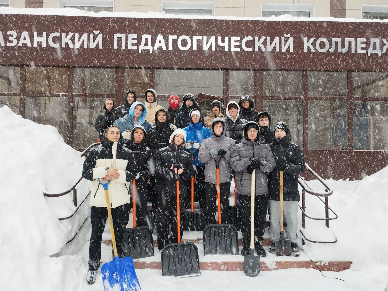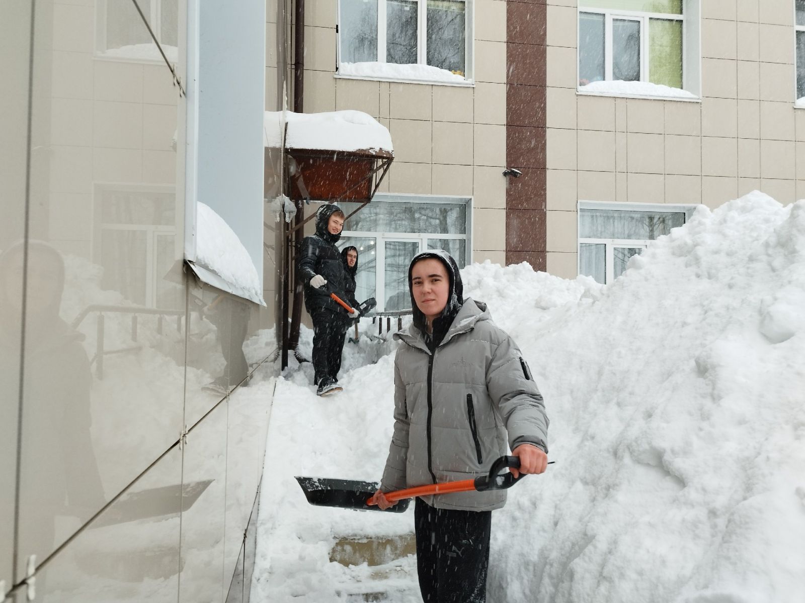 Ребята 812 и 813 групп дружно пришли на помощь в расчистке территории колледжа от снега.