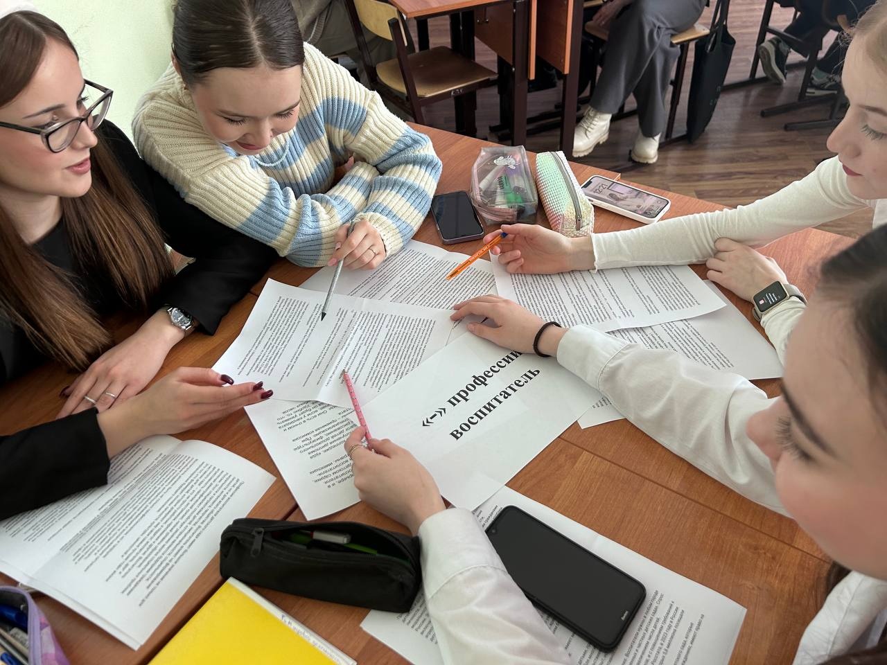 В завершении декады ПЦК педагогики психологии дошкольного образования проведено итоговое мероприятие для студентов 3-4 курсов специальности Дошкольное образование, Преподавание в нач. классах и Физическая культура на тему: "Профессия - педагог, за и против". Были рассмотрены важные вопросы профессионального ориентирования и перспективы развития дошкольного и начального образования в целом.