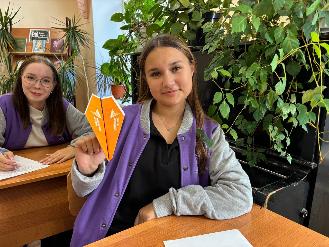 Студенты оформили бумажные самолетики с пожеланиями для школьников выпускного класса школы-партнера.