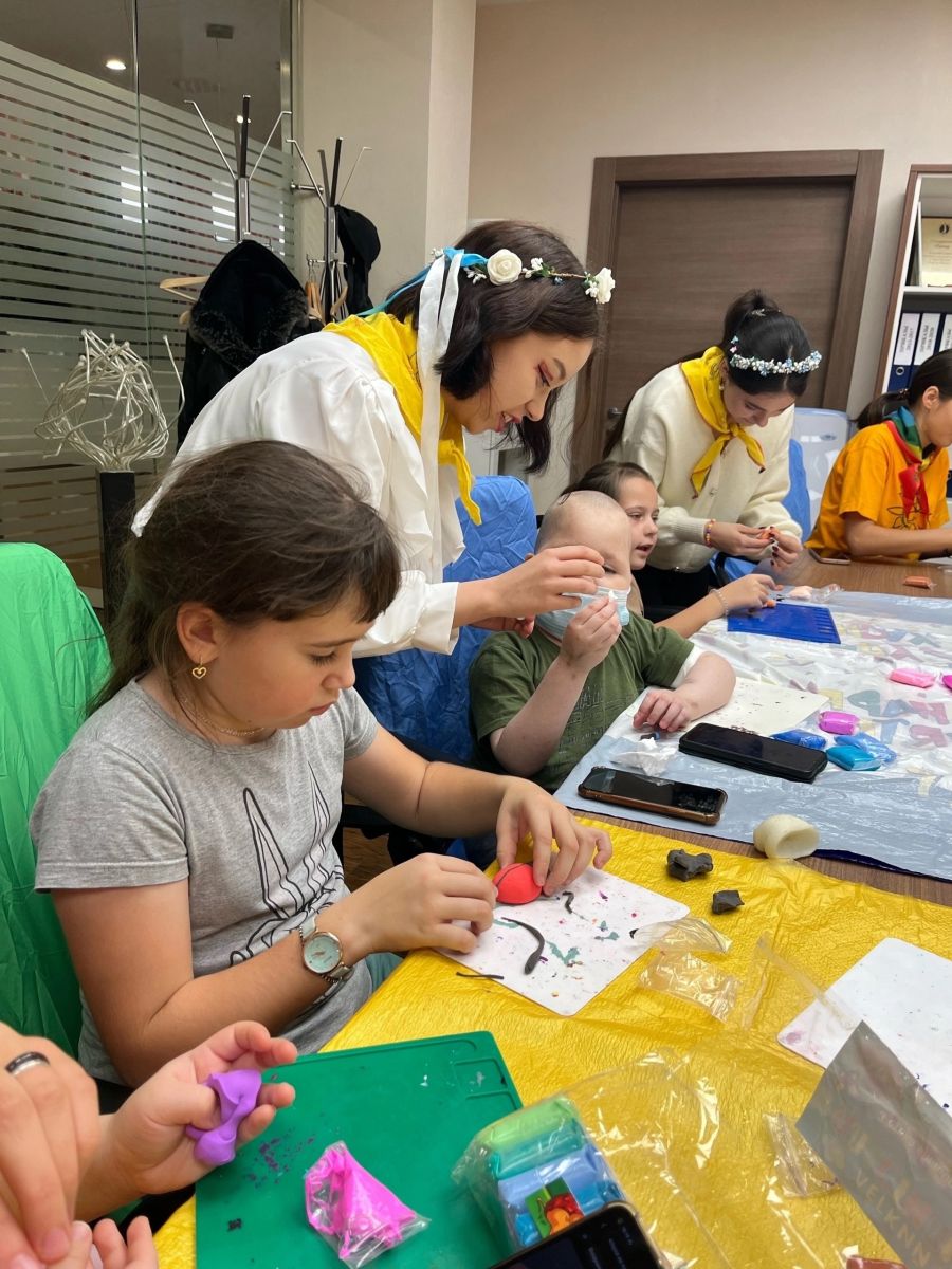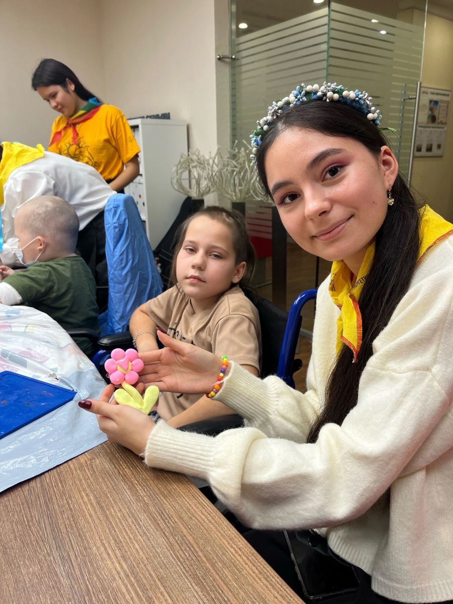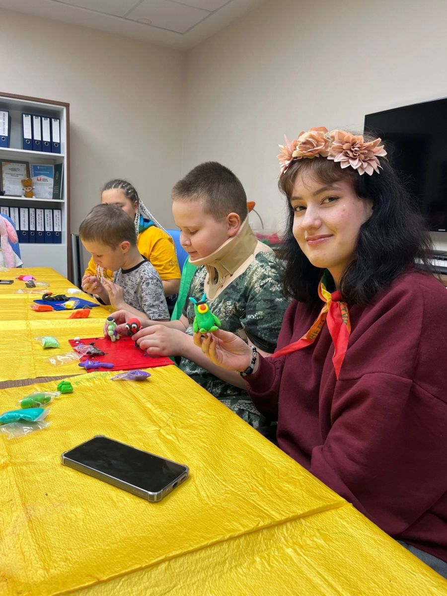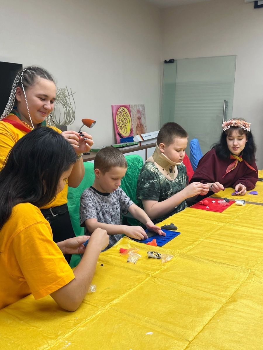 Команда студентов провела мастер-класс: вместе с ребятами из воздушного пластилина создали талисманы и пели песни под гитару.