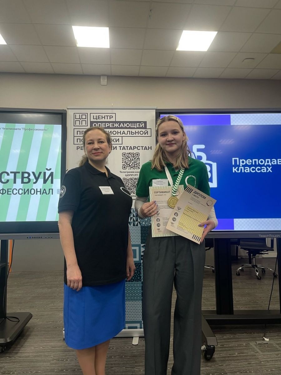 1 место в компетенции «Преподавание в младших классах (Юниоры)» заняла Костромидина Мария Дмитриевна, учащаяся МАОУ «Средняя общеобразовательная школа №34 с углубленным изучением отдельных предметов» г.Набережные Челны.