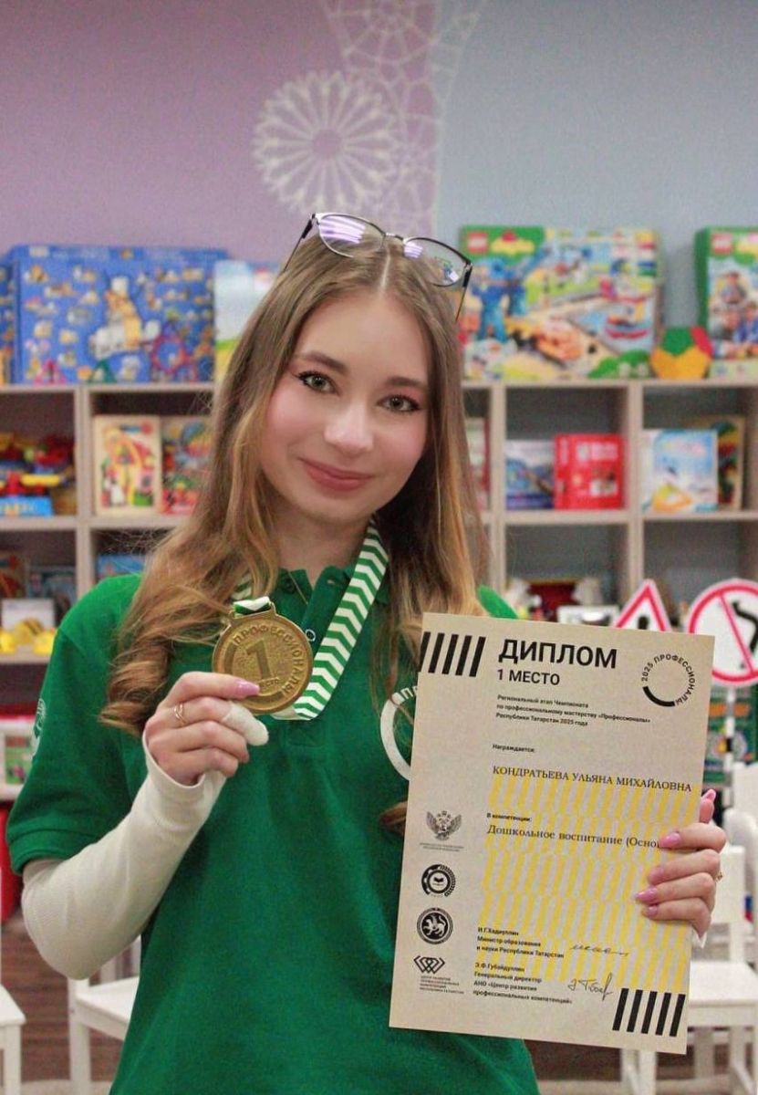 В период с 24.02 по 27.02 на базе Казанского педагогического колледжа проходил региональный этап Чемпионата «Профессионалы» по компетенции «Дошкольное воспитание» (Основа). На площадке соревновались 6 участников из: Казани,Арска, Набережных Челнов, Лениногорска, Нижнекамска и Мензелинска. Наша студентка 333гр. Кондратьева Ульяна, выполнив все задания на отлично, показала себя настоящим профессионалом своего дела и заняла почетное 1 место!