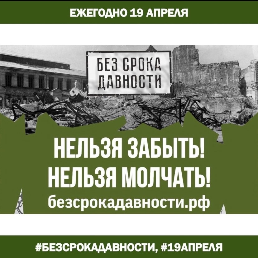 19 апреля в России проводится День единых действий в память о геноциде советского народа нацистами и их пособниками в годы Великой Отечественной войны 1941-1945 годов.
