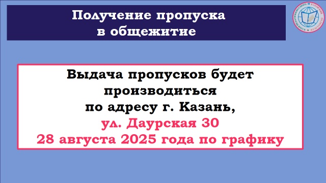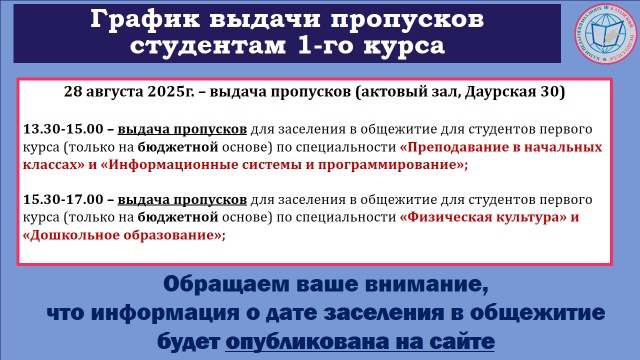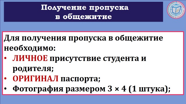 ИНФОРМАЦИЯ О ВЫДАЧЕ ПРОПУСКОВ В ОБЩЕЖИТИЕ ПЕРВОКУРСНИКАМ, ОБУЧАЮЩИМСЯ НА БЮДЖЕТНОЙ ОСНОВЕ