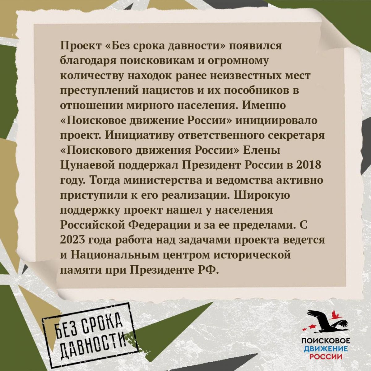 Международный конкурс сочинений «Без срока давности» – самый масштабный конкурс образовательно-просветительских мероприятий проекта, в прошлом году получил статус международного конкурса. Он является прямым продолжением Всероссийского конкурса сочинений «Без срока давности», который проводится с 2019 года.