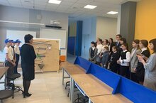 Гостям провели показательную экскурсию по лицею. Ученики 5И класса Буреев Эмиль, Арюков Артур и Абубакиров Макар показали и рассказали про свой групповой проект "Машина Голдберга", ученица 1И класса Галиева Зарина продемонстрировала свой мульт-проект.