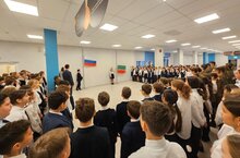 Чести поднять государственный флаг РФ был удостоен учащийся 5В класса – Нугманов Адель – призёр Международной научно-практической конференции в г.Улан-Удэ в рамках фестиваля «Дорога дружбы».