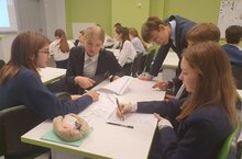 Сегодня в лицее состоялась встреча гостей - участников Метрологического образовательного кластера Санкт-Петербурга. Гости познакомились на экскурсии с образовательным пространством лицея, а в рамках рабочей встречи представили опыт Метрологического образовательного кластера в ГБОУ "Средняя общеобразовательная школа № 237" Красносельского района г.Санкт-Петербург (Морарь И.Т.), систему координирования данным направлением работы в городе и в России (Сенкевич Т.А., Игнаткович А.С.). Были представлены доклады доцентов ведущих вузов Казани: Сойко А.И.( КГТУ-КАИ) и Петровой Е.В. (КГТУ-КХТИ). Опыт деятельности 11А класса технологического профиля метрологического направления МБОУ "Многопрофльный лицей № 187" был представлен в презентации Яблонской А.Н. Очень интересным и познавательным стал открытый урок Дорониной Н.А. (Санкт-Петербург) с нашим 11 А классом по теме "Стандарты качества". Благодарим директора лицея Галееву Г.Г., директора ВНИИР Зарипова Н.Ш., советника директора ВНИИР - координатора Метрологического образовательного кластера РТ Фишман И.И. за участие МБОУ "Многопрофильный лицей № 187" в таком актуальном и перспективном проекте!