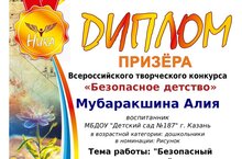 Наши воспитанники подготовительной группы №9 и логопедической группы №12 под руководством воспитателя Низамиевой Резеды Надыловны приняли участие во Всероссийском творческом конкурсе "Мое безопасное детство" и заняли следующие места: