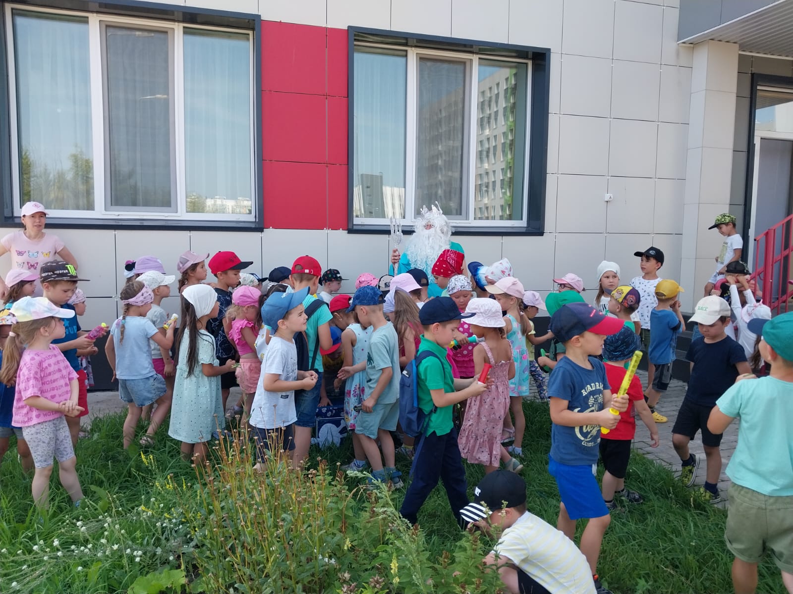 В нашем детском саду с детьми старшего возраста прошла увлекательная квест-игра «В поисках Нептуна» . Дети вместе с героями отгадывали загадки, принимали участие в веселых эстафетах, исправляли проделки злых пиратов, с помощью карты искали сундук с сокровищами. А еще пели задорные песни, танцевали зажигательные танцы. Дошкольники получили возможность проявить смелость, ловкость, настойчивость в достижении результата. Все игры были подобраны с учетом возрастных особенностей детей. Проведение этого летнего праздника принесло детям не только массу положительных эмоций, а также способствовало закаливанию их организма. Дети были рады встрече с могучим властелином морей и океанов царём Нептуном! . В конце праздника были игры с мыльными пузырями и праздничная дискотека. -