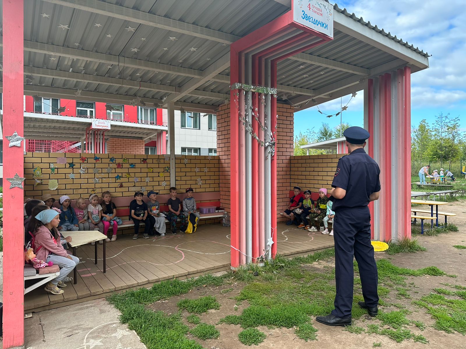 Профилактика детского дорожно-транспортного травматизма – проблема всего общества, одна из приоритетных задач образовательных учреждений. Решить ее можно только общими усилиями. Поэтому встречи с инспекторами ГИБДД всегда актуальны и важны.1 августа наш детский сад посетил инспектор ГИБДД Гильмутдинов Линар.Целью этой встречи было закрепление знаний о правилах дорожного движения, профилактика детского дорожно-транспортного травматизма -