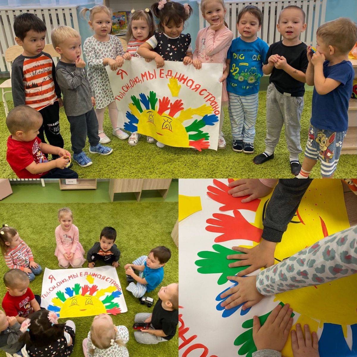 4 ноября вся Россия отметила День Народного Единства. Это общенародный праздник, имеет корни, уходящие достаточно далеко в историческое прошлое нашего государства.В детском саду прошли тематические занятия и беседы, посвященные этому празднику.В ходе разнообразных мероприятий дети в доступной форме познакомились с историей возникновения праздника, подвигами наших предков во имя независимости Родины. Ребята вспомнили о том, как велика и красива наша Родина, как богата событиями её история, закрепили свои знания о государственных символах.