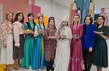 Встречали всех с угощениями разных национальностей , в национальных костюмах , под звуки колоритной музыки .