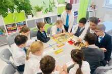 На переменах ученики начальной школы, наши любимые «Орлята», играли в шашки, шахматы, домино и ходилки .