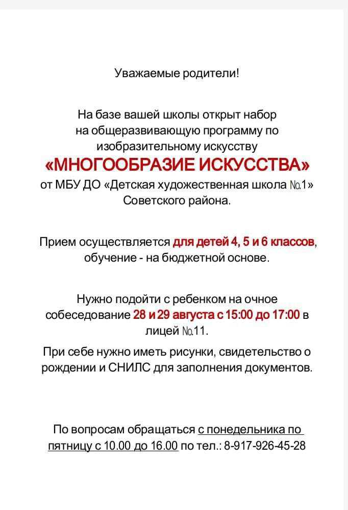 МАОУ «Многопрофильный лицей №11» объявляет набор в группы «Ступеньки к школе» для детей, поступающих в 1 класс в 2024 году.