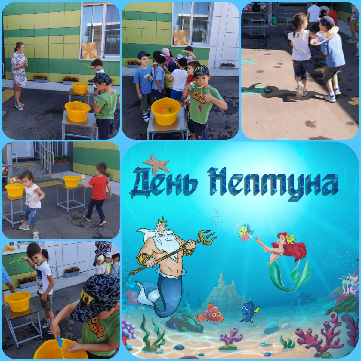 В подводном царстве,В морском государстве,Жил царь морской на дне морском.Без дела не скучал,Корону чистил он песком,Да корабли качал.И каждый год на дне морскомустраивал он бал.Гостей морских со всех широтна праздник приглашал!В нашем детском саду 27 июля был проведен праздник «День Нептуна».«День Нептуна» — это мероприятие летней оздоровительной кампании, праздник детей, это положительные эмоции, радость и здоровье. В празднике принимали участие дети всех возрастных групп. На протяжении всего праздника дети играли в весёлые игры, соревновались в различных видах эстафет. Дошкольники получили возможность проявить смелость, доброжелательность, настойчивость в достижении результата. Все игры были подобраны с учетом возрастных особенностей детей. Завершением праздника стала морская дискотека.Дети остались довольными и получили массу впечатлений от праздника. -