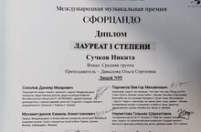Поздравляем Сучкова Никиту с победой в Международном музыкальном конкурсе "СФОРЦАНДО" в номинации "Вокал".Целями творческого состязания являются выявление и поддержка талантливых детей и молодежи, развитие их творческого потенциала, повышение исполнительского мастерства и сценической культуры.