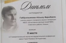 Гордимся нашим педагогом! Габдуллазянова Айсылу Фаридовна, учитель родного татарского языка и литературы, заняла второе место на VI Межрегиональной научно-исследовательской конференции имени Гарая Рахима. От всей души поздравляем с этой победой и желаем ей удачи, энергии и новых свершений!