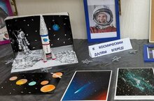 В нашем детском саду стало доброй традицией проведение творческих выставок к определенному значимому празднику. В рамках реализации проекта "К космическим далям вперед!" в апреле прошла выставка на тему "День космонавтики". Цель: Украшение интерьера детского сада к празднику Космонавтики, создание пособий для игр и занятий. Воспитать художественный вкус, интерес к изготовлению поделок своими руками. Воспитать любовь к родине.