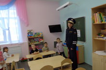 На занятиях по Правилам дорожного движения дошколята изучают как правильно переходить дорогу, какие дорожные знаки есть и для чего они нужны,зачем у светофора три огонька и кто такой инспектор ГИБДД.На фотографии занятие в группе "Умники и Умницы", воспитатель Самойленко Ольга Алексеевна в роли инспектора ГИБДД.